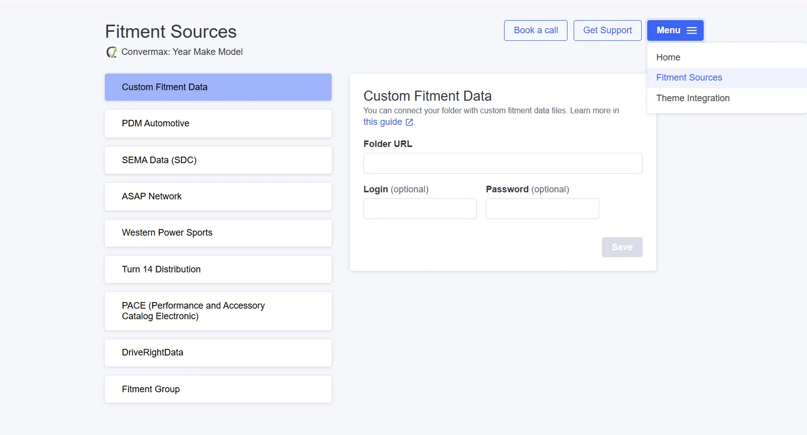 You can see all supported integrations on our website. Most of them can be connected through the Fitment Sources page in our app.