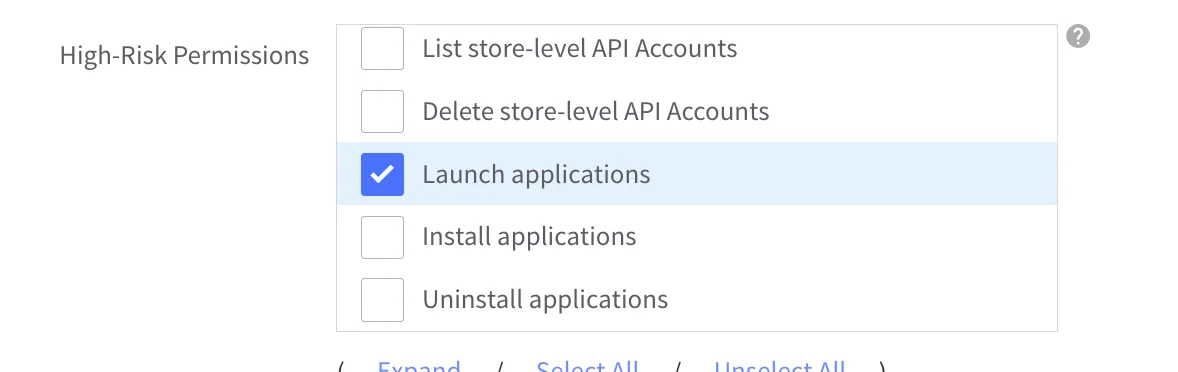 Check “Launch Applications” on High-Risk Permissions.