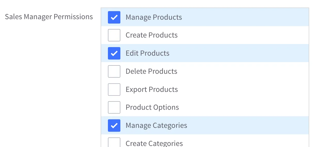 Sales Manager Permissions: