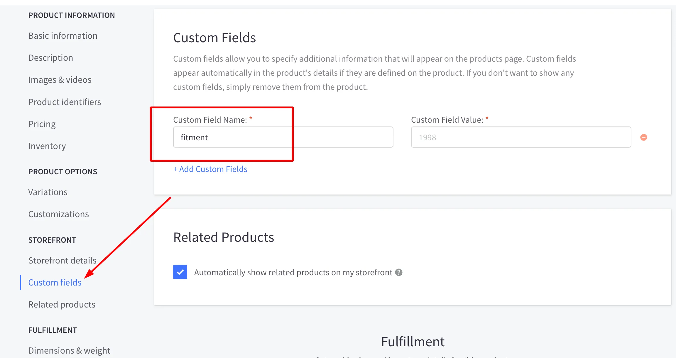 Add the fitment data to the “Custom Field Value”