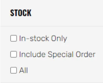 - If a product’s Inventory is not tracked (Track inventory is OFF), and its Purchasability is NOT set up to “This product cannot be purchased in my online store”, then such a product won’t be “In Stock” or “Out of Stock” at all. It still can be found under the “All” option though. However, it still can be a “Special order” product. Or not. It depends on the Purchasability setting or the “Availability Text” field.