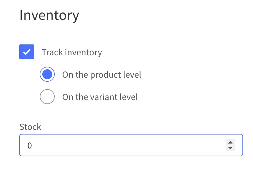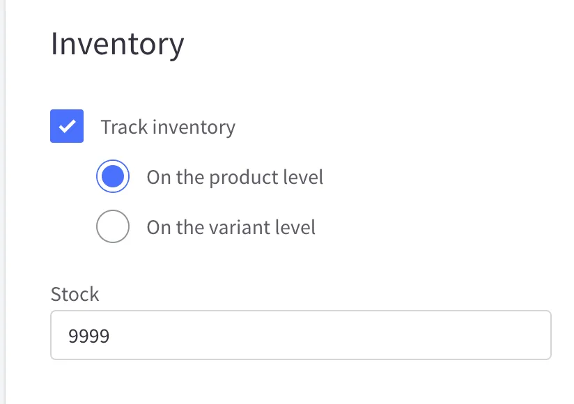 Section titled “A product is In Stock if:”- Inventory tracking is ON AND the stock level is not “0” or “9999”: