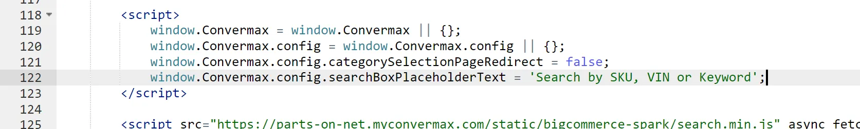 • or, if the store inherits scripts from any theme, specify the text in the window.Convermax.config.searchBoxPlaceholderText