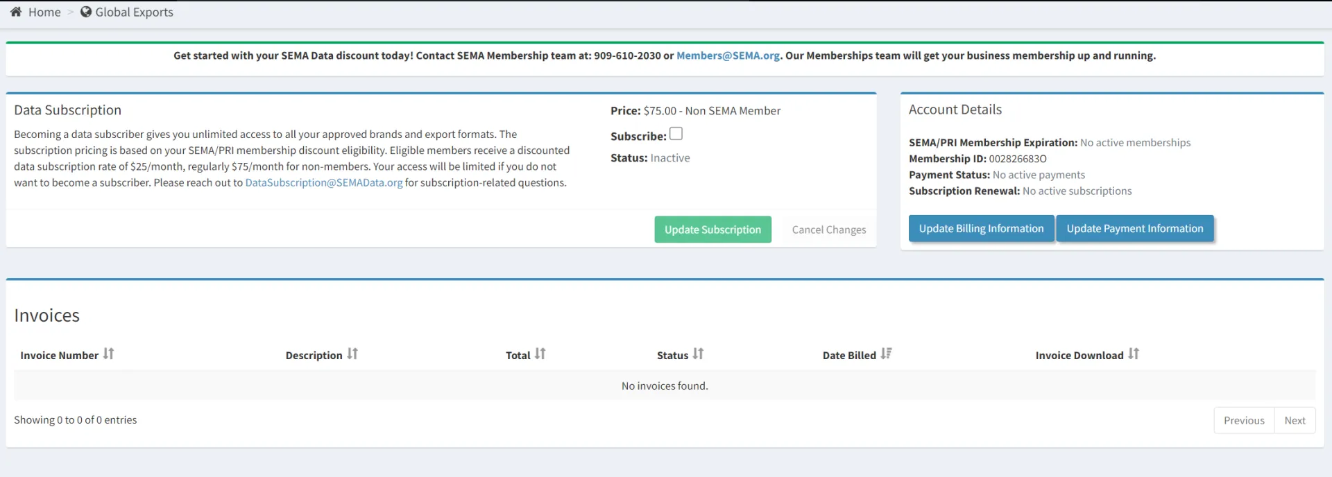 If instead of above the global export page looks like below, then this means that the client needs to buy a SEMA subscription