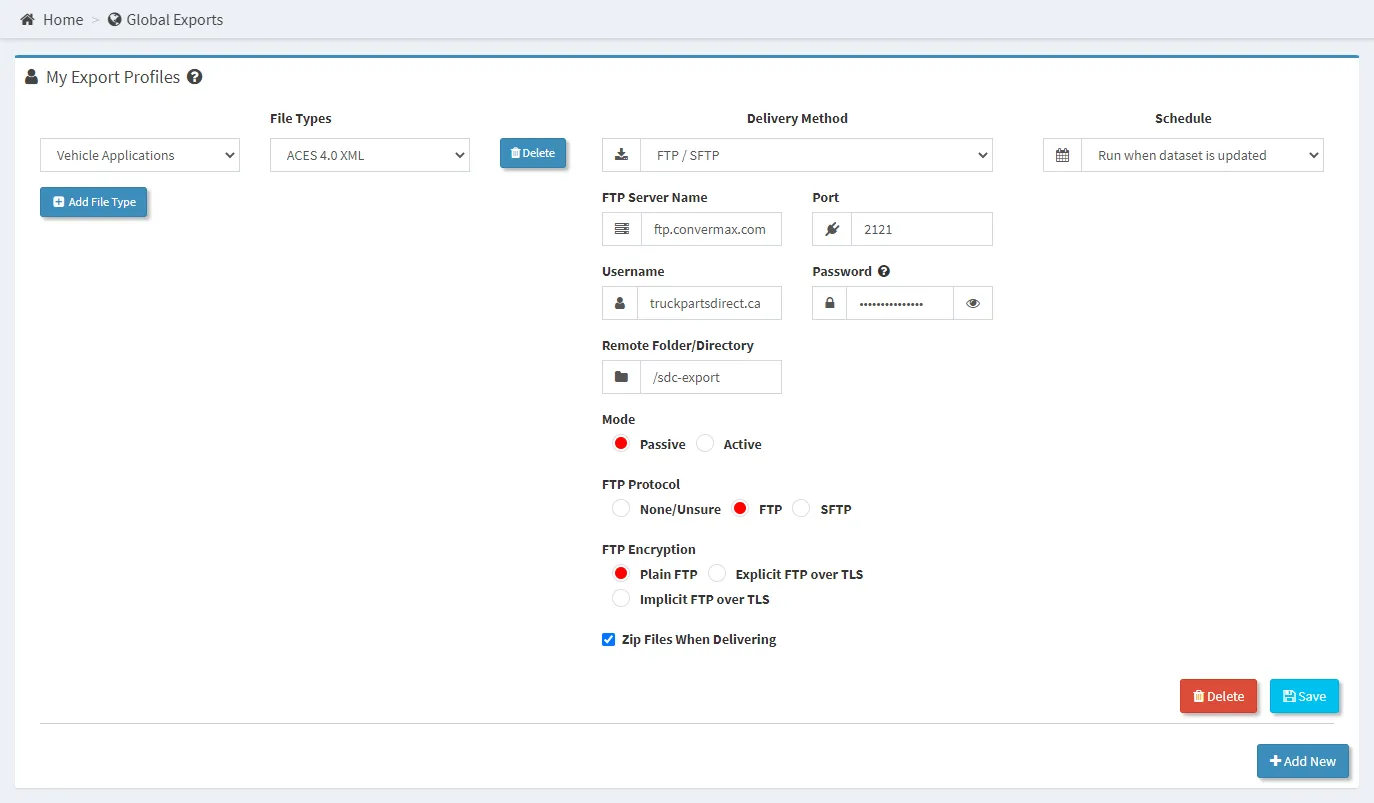 Click on ’+ Add New’ button in ‘My Export Profiles’ section.