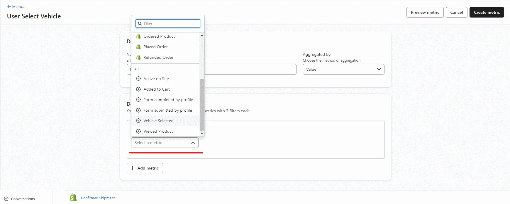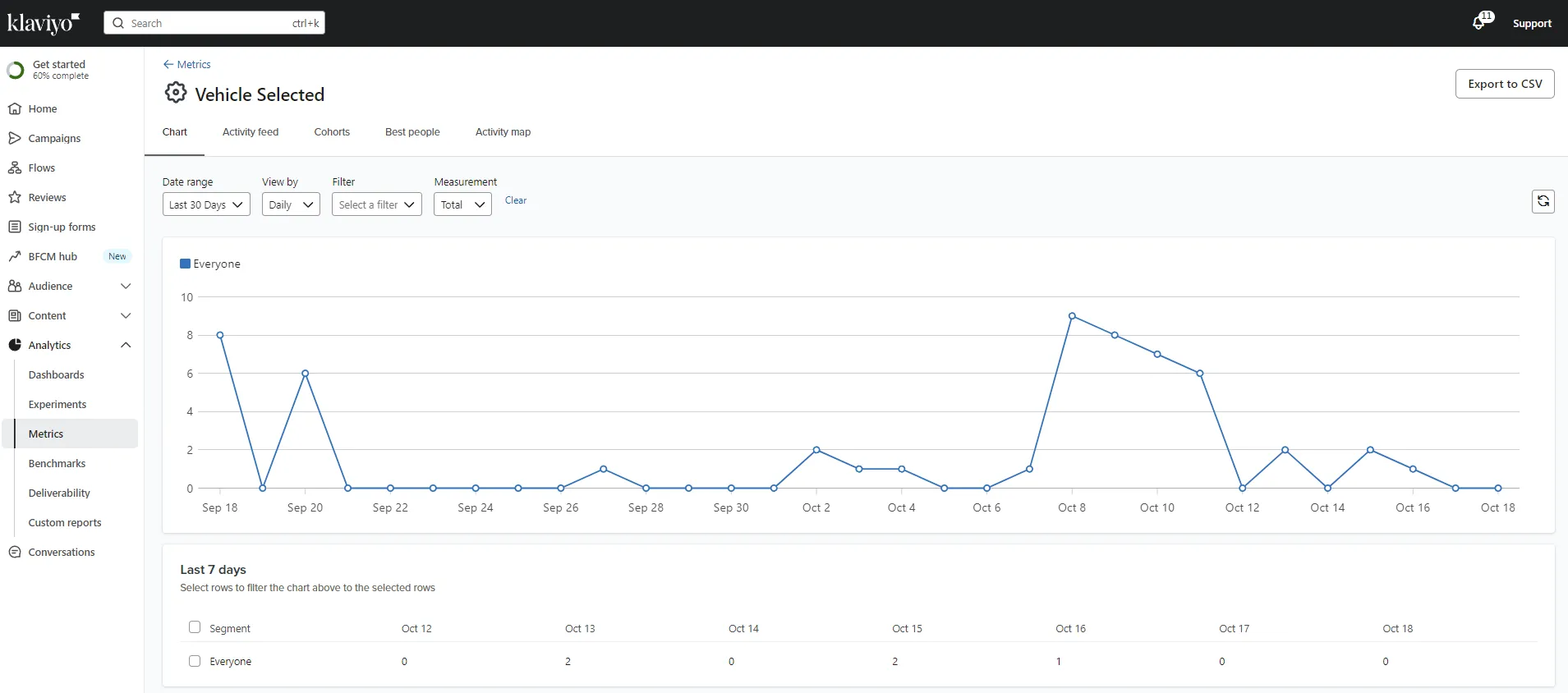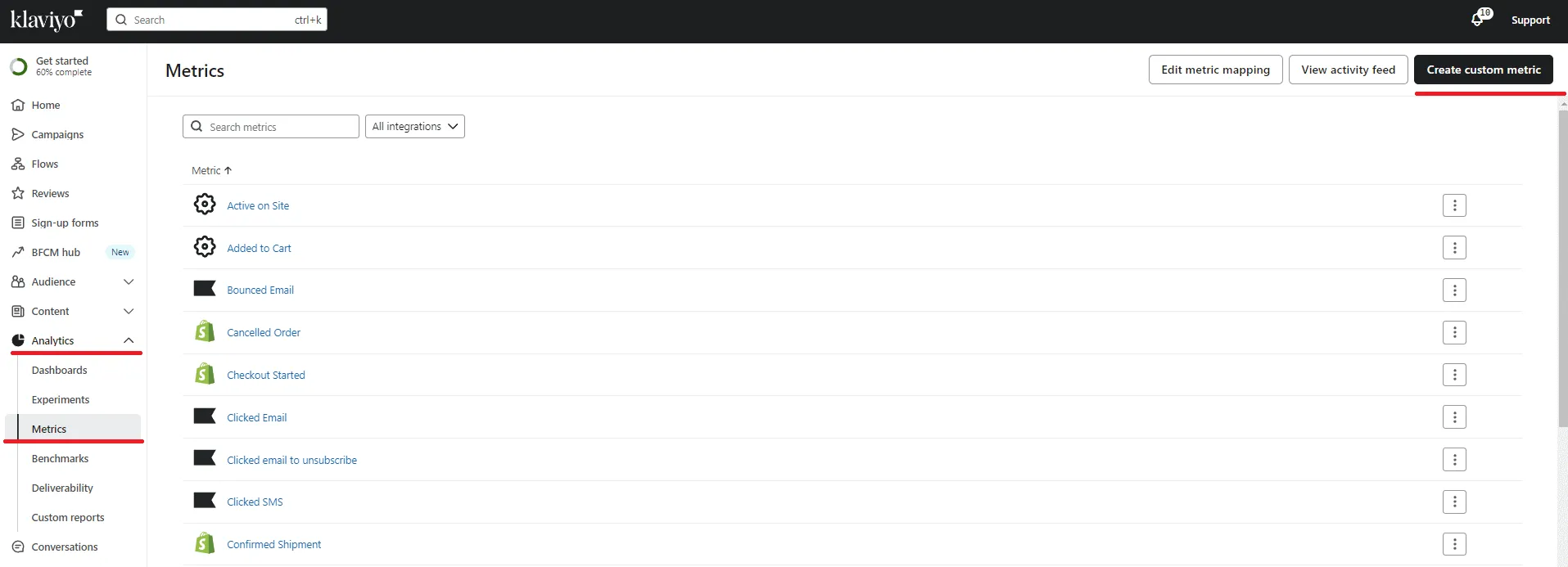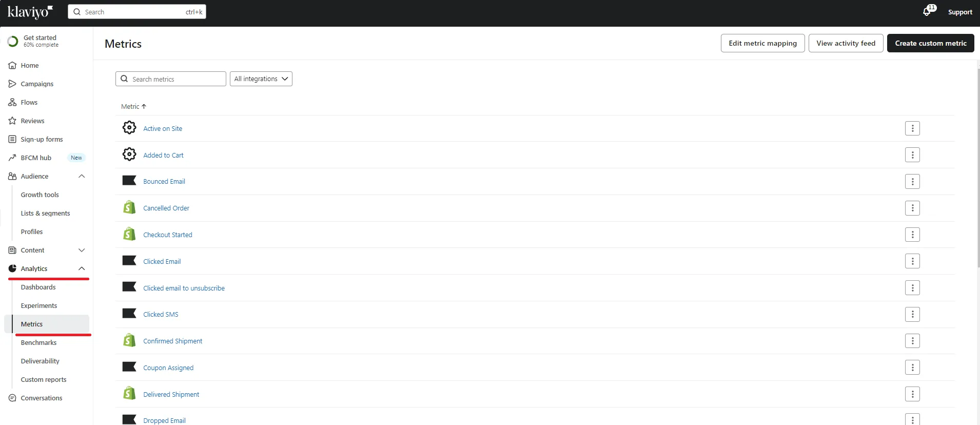 Section titled “What information do we provide to Klaviyo”Klaviyo also supports custom metrics based on desired events.