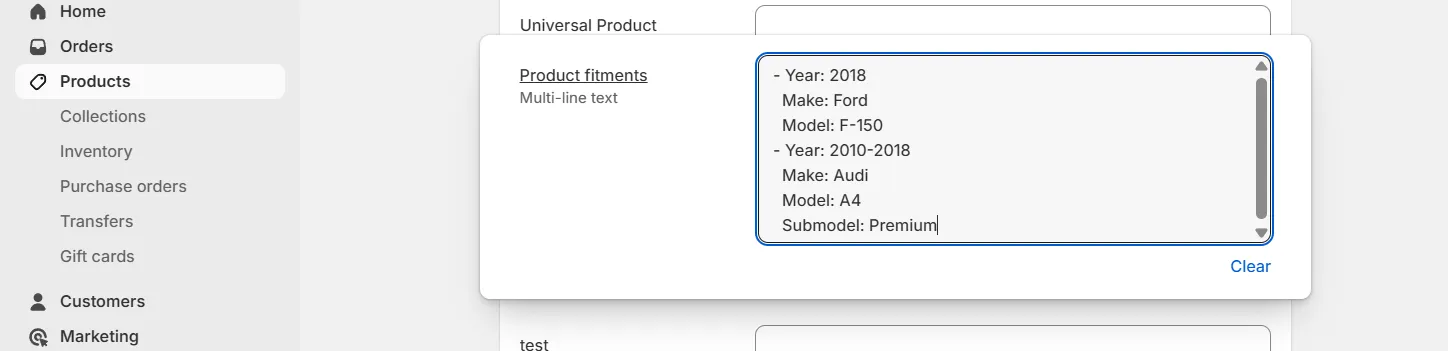 Add Custom Fitment Data with Metafields