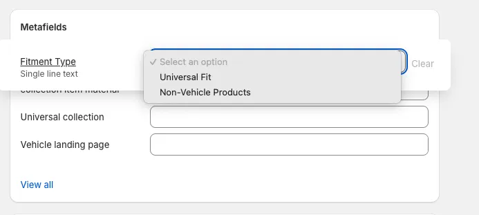 • Select Universal Fit or Non-Vehicle Products option if the collection contains such products. If one of the options is selected, the YMM widget will be hidden on this collection.
