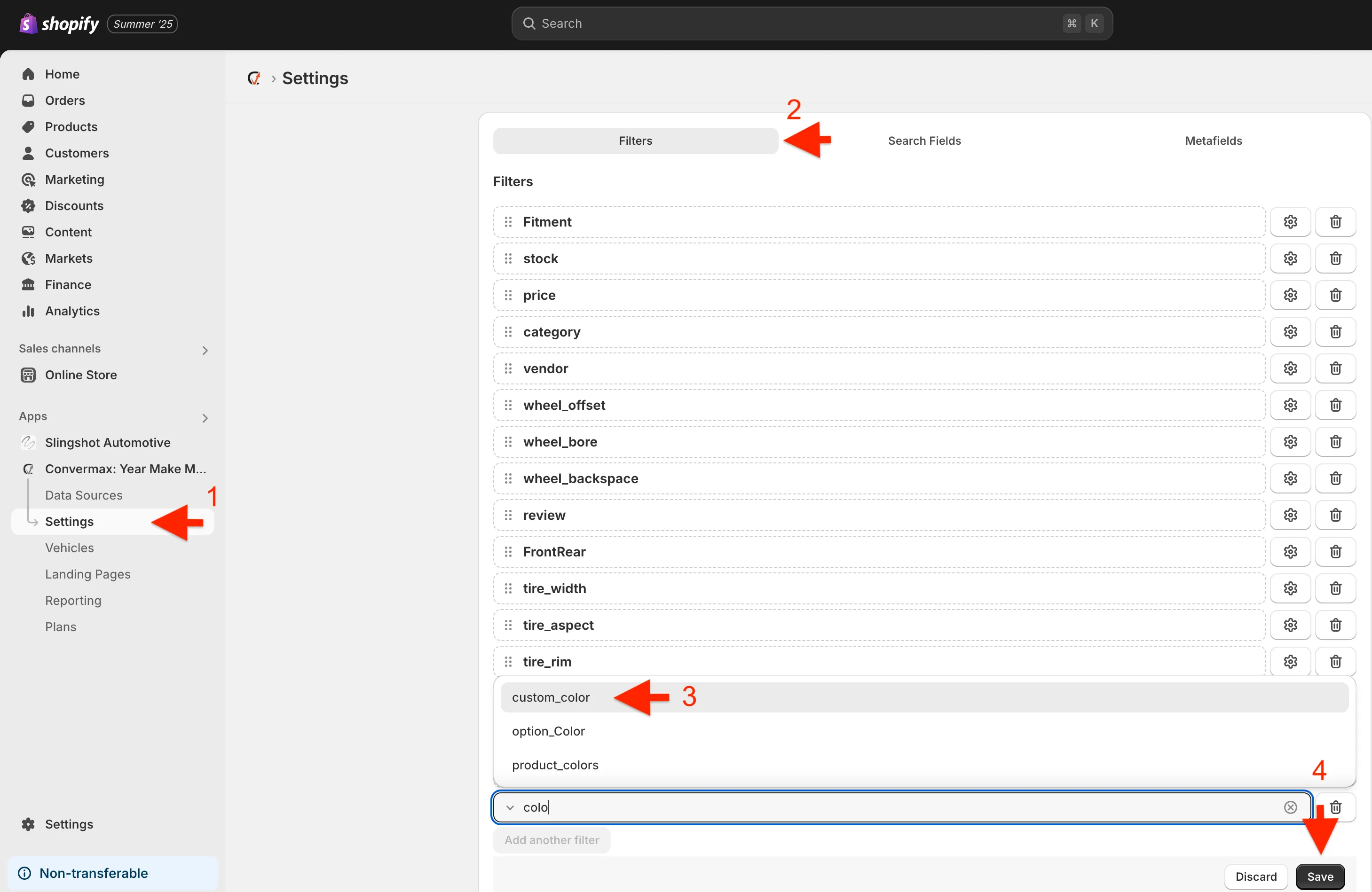 When it’s done, you’ll be able to find your newly created field on the Filters page of our app. Go there, press Add another filter and find the recently added Metafield (it will be listed as
