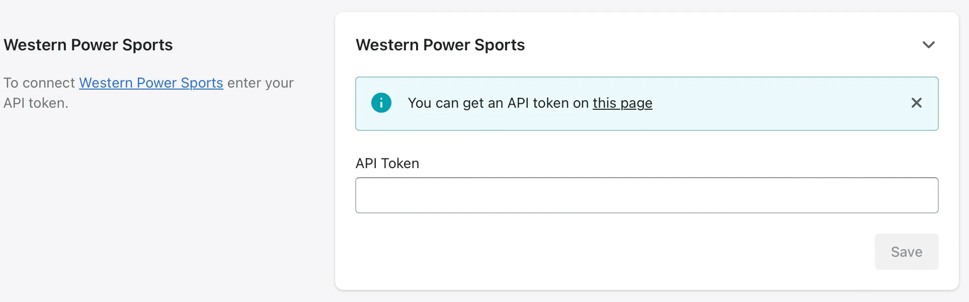 Section titled “WPS (Western Power Sports)”If you have a WPS account, you can connect it to the app to pull fitment data. Go to the WPS website, login into your account, and copy your API token. Enter it in the blank field and confirm by clicking Save.