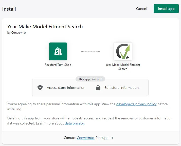 For the search to work, Convermax Year Make Model Fitment Search needs access to your: