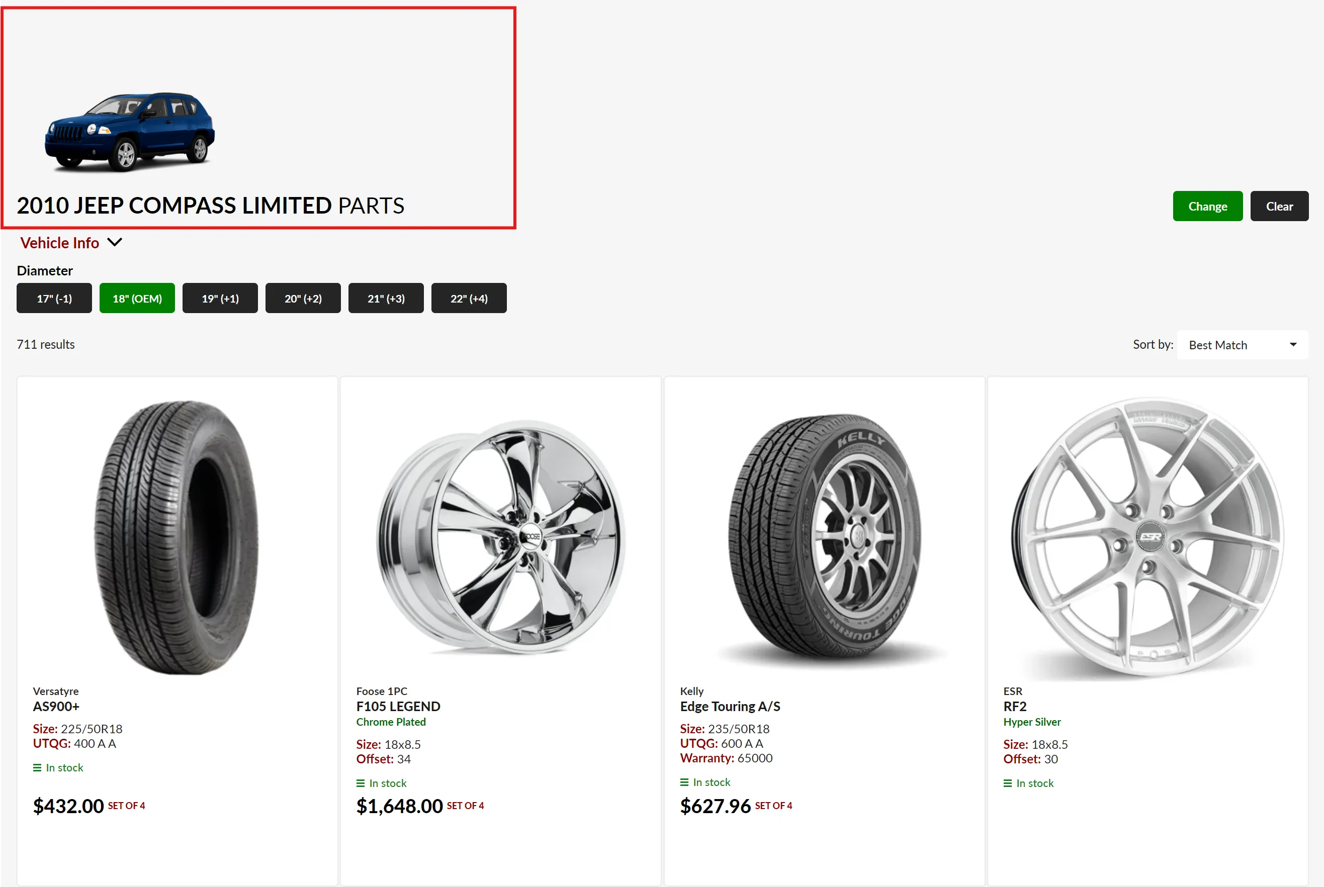 We offer AutoSync Wheel Visualizer as a part of the Rim Mastery Plan and support integration with it if you already have a direct contract. AutoSync Wheel Visualizer provides an image of a selected vehicle with the wheels chosen from the product grid.