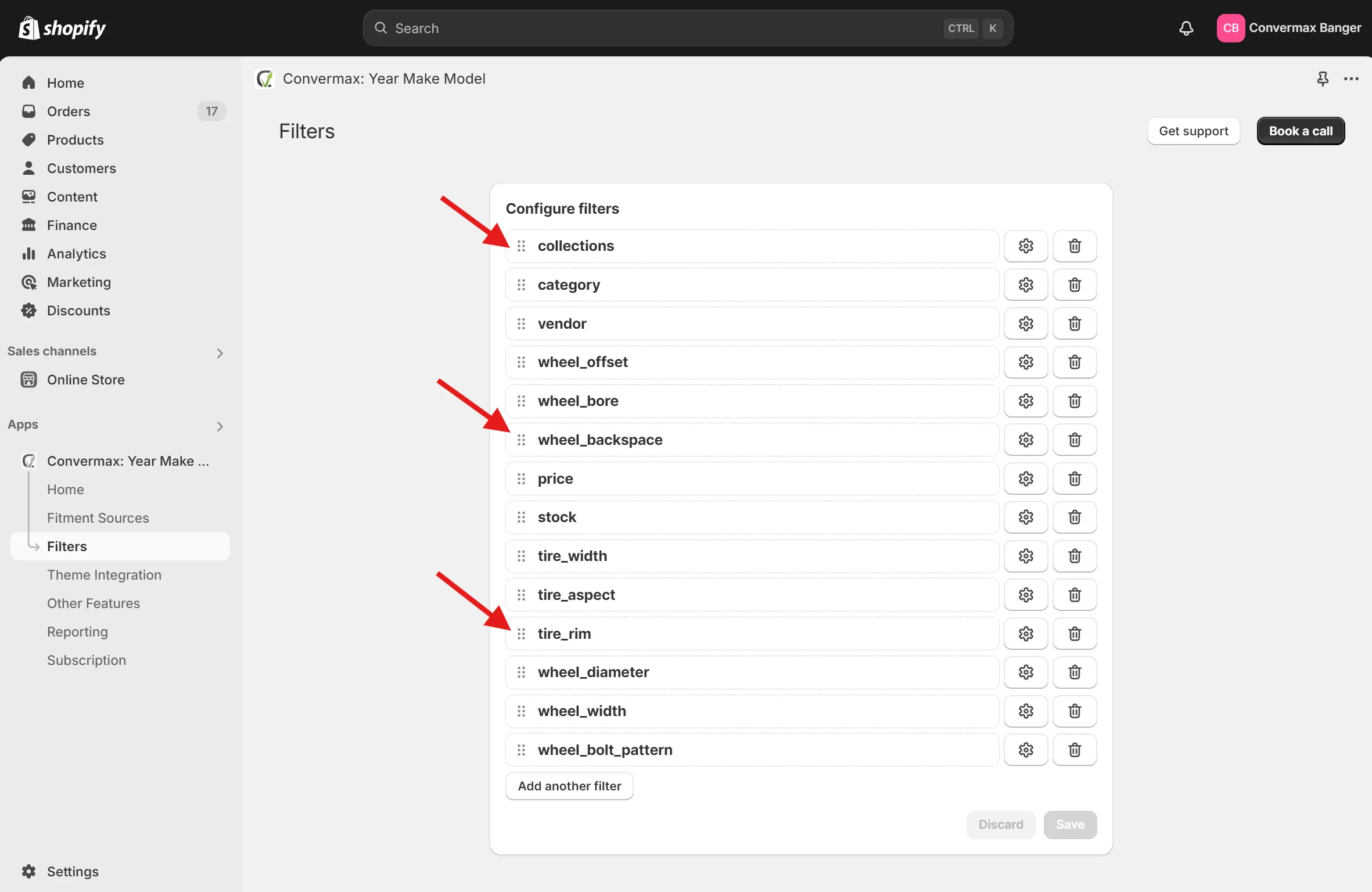 Q: I had some filters configured in the Shopify Search & Discovery app, can I import them to the Convermax product grid?