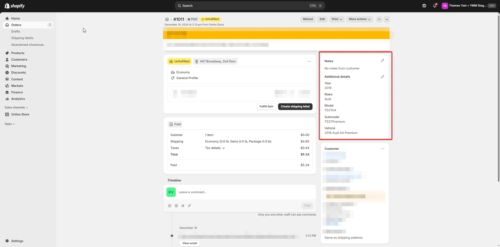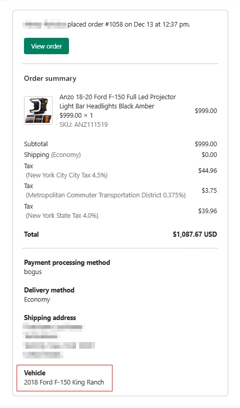 Vehicleas a plain text summary and each vehicle field as a separate attribute. This allows staff to quickly see which vehicle the customer had chosen at checkout.