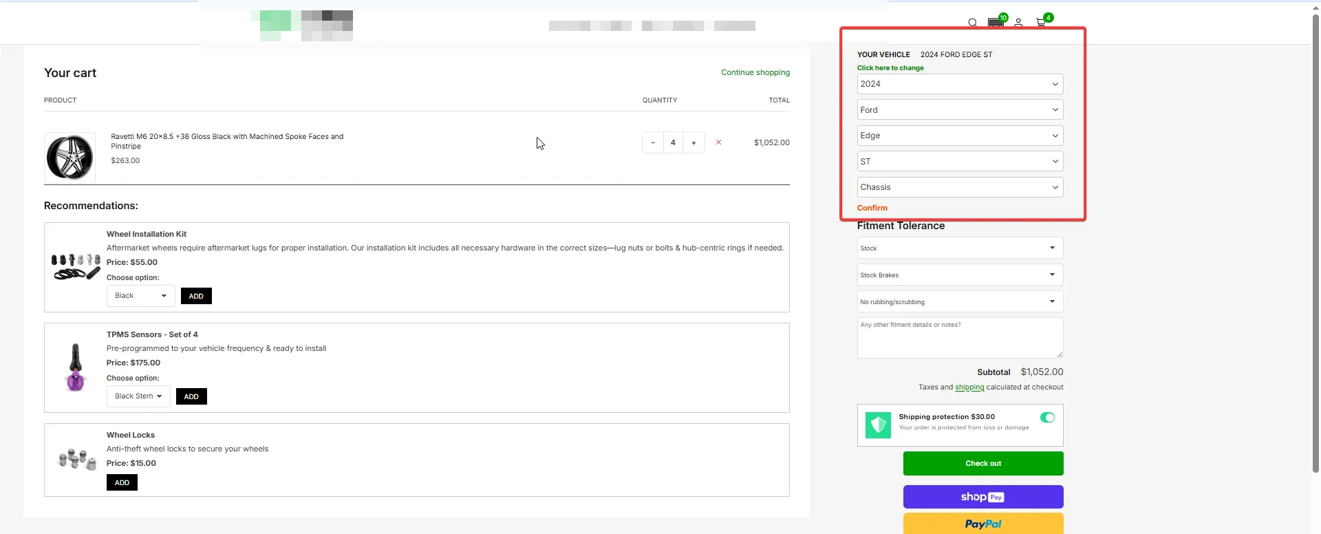 export default { includes: ['shopify-generic'], ...shopifyGenericDefaults, AfterInit, ... fitmentSearch: { ...shopifyGenericDefaults.fitmentSearch, onVehicleSelected, onVehicleDiscarded, }, ... Widgets: [ ...shopifyGenericDefaults.Widgets, { name: 'HeaderVehicleWidget_cart', type: 'VehicleWidget', location: '#cm-cart-ymm', template: 'fitmentSearch/cartVehicleWidget', isAlwaysActive: false, doNotRedirectOnVehicleSelect: true, initCollapsed: true, }, ],- Create