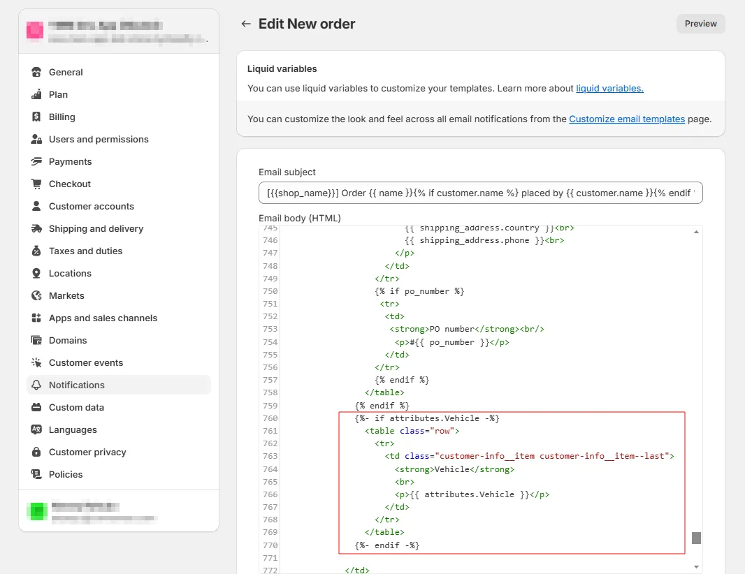 {%- if attributes.Vehicle -%}<table class="row"><tr><td class="customer-info__item customer-info__item--last"><strong>Vehicle</strong><br /><p>{{ attributes.Vehicle }}</p></td></tr></table>{%- endif -%}