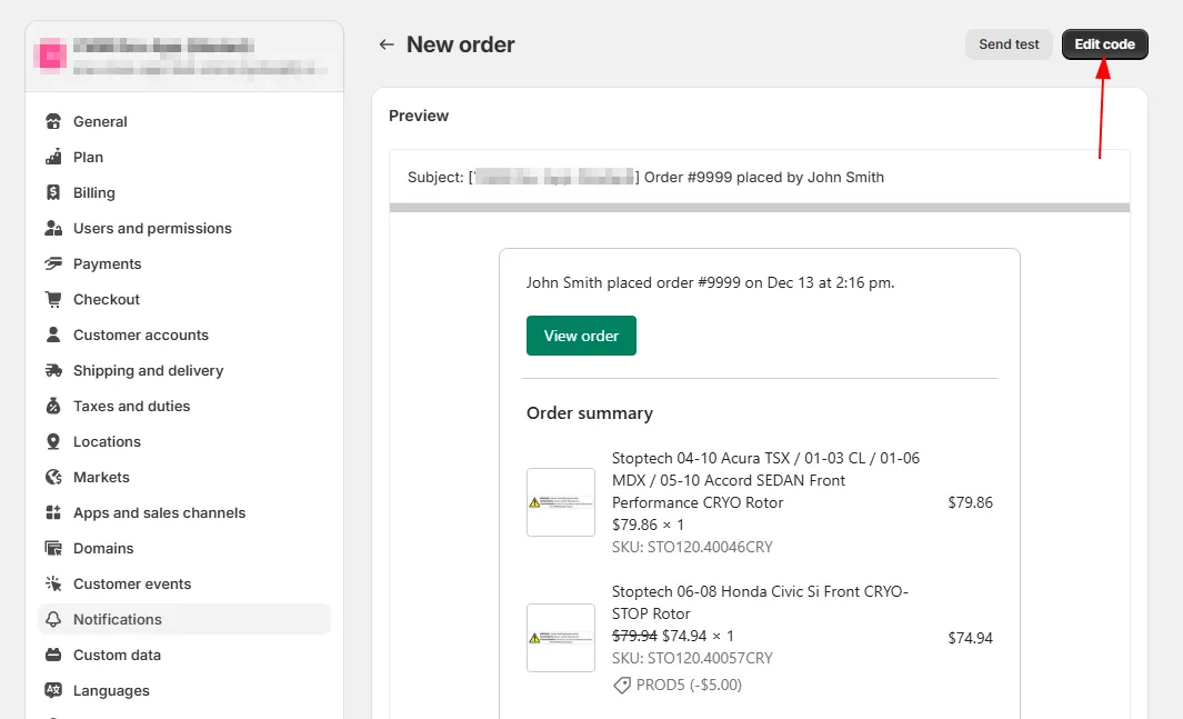 Add the following code to the code editor at the bottom. For example, place it after the Shipping address block.